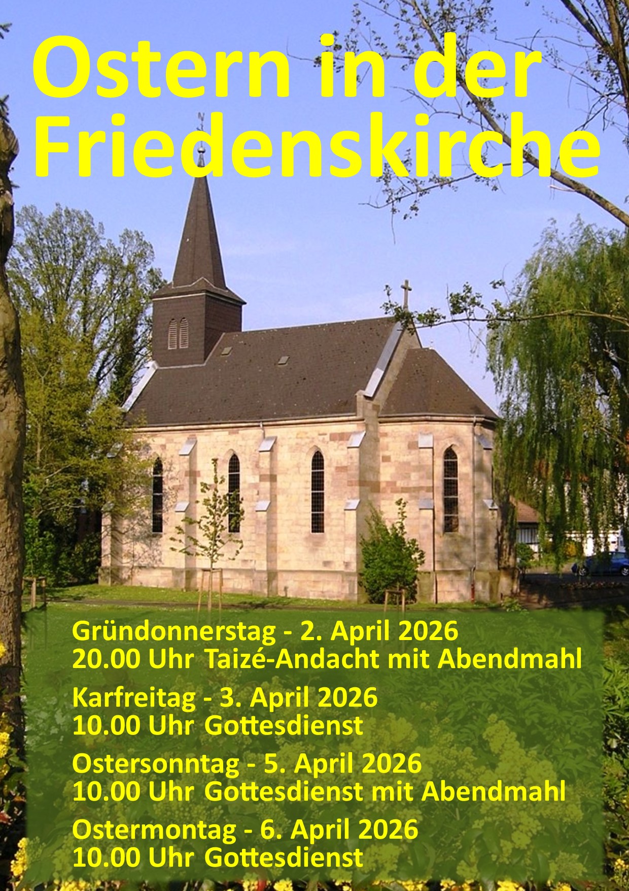 In der Friedenskirche am Bingeweg 2 in Baunatal-Altenbauna haben Sie dazu bei folgenden Gottesdiensten Gelegenheit: